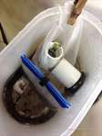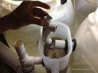 Egg collector for wdt (I was in Ashville NC last weekend visiting my sister) [link=javascript:void(InsertSmiley('%5Battachment=0%5D'))]IMG_0873.jpg[/link] [link=javascript:void(InsertSmiley('%5Battachment=1%5D'))]IMG_0878.jpg[/link] [link=javascript:void(InsertSmiley('%5Battachment=2%5D'))]IMG_0880.jpg[/link] Usually it's cleaned of algae and scum. But I haven't collected eggs in half a year so there was no point in cleaning it. I put in the pvc "J" piece, netting bag and "whisper bio bag" divider before collecting at night. Then I remove these parts, with eggs in the net bag, a couple hours after lights out. The main unit is a tupperware like pitcher I bought at "big lots", though I saw them some where else recently. Maybe Walmart? I found that paint sieve bags from the hardware store have a good mesh size, just small enough to catch the eggs but big enough to allow the rest of the crud through. The pvc "j" piece helps keep the eggs on the surface, less disturbed